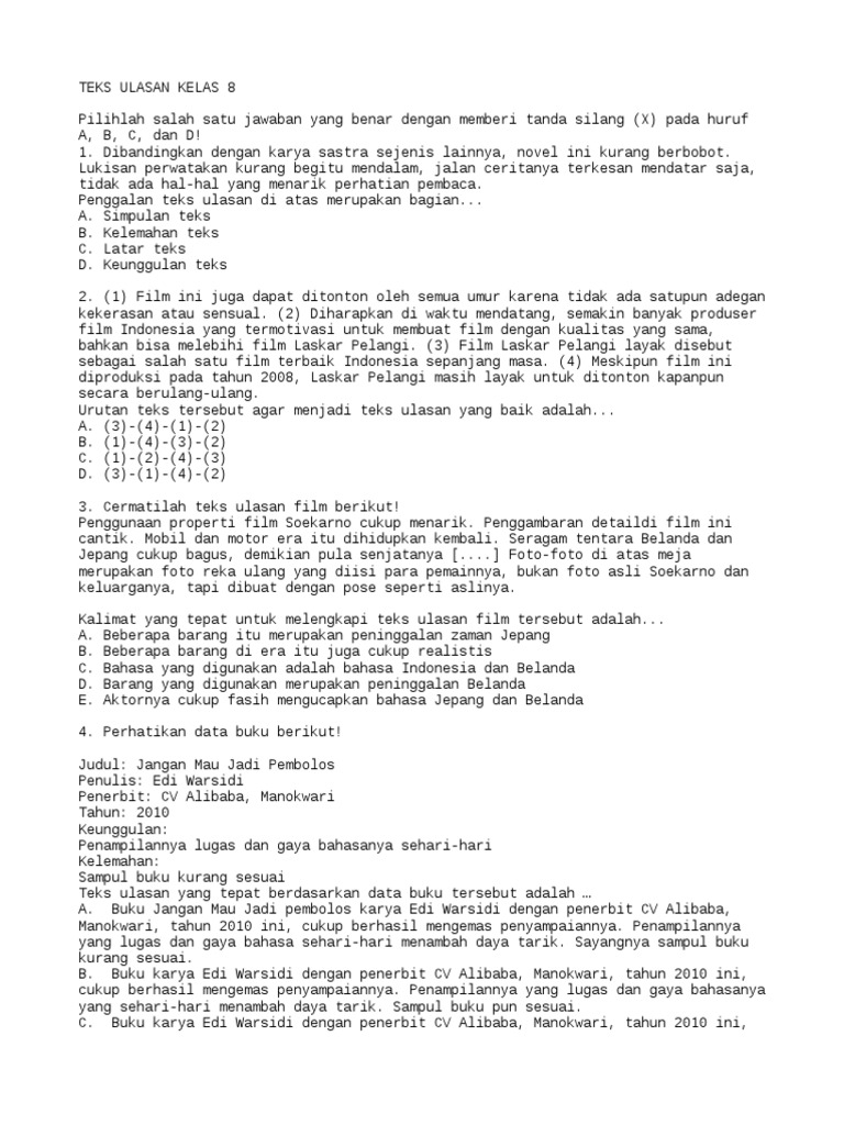Contoh Soal Dan Jawaban Teks Ulasan E Kelas Com from 1.bp.blogspot.com Paragraf teks ulasan yang tepat untuk data buku di atas adalah. Check spelling or type a new query. We did not find results for: Maybe you would like to learn more about one of these?